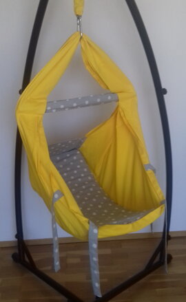 Látková kolíska má dvojité dno (resp. tunel na dne), kam sa dáva zložená deka alebo špeciálny matrac / v ponuke matracov nájdete z kokosových vlákien, z ovčej vlny, alebo molitanový - matrac nie je súčasťou základnej dodávky/. Kolísku ide uzatvoriť dvoma pármi šnúrok.